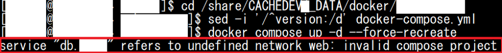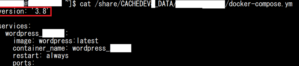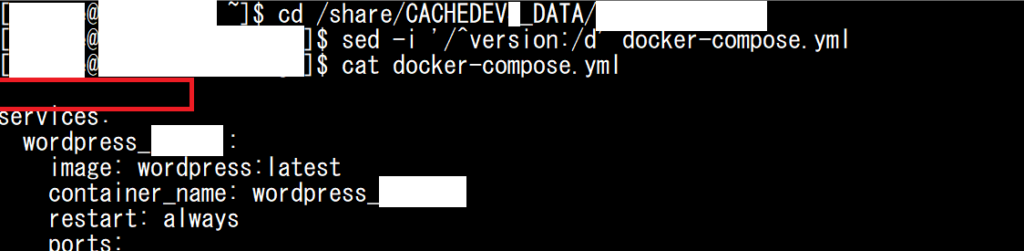 version:を削除してdocker compose up -d --force-recreateを実行する前に、そのファイルが実際に使われているかを確認します。