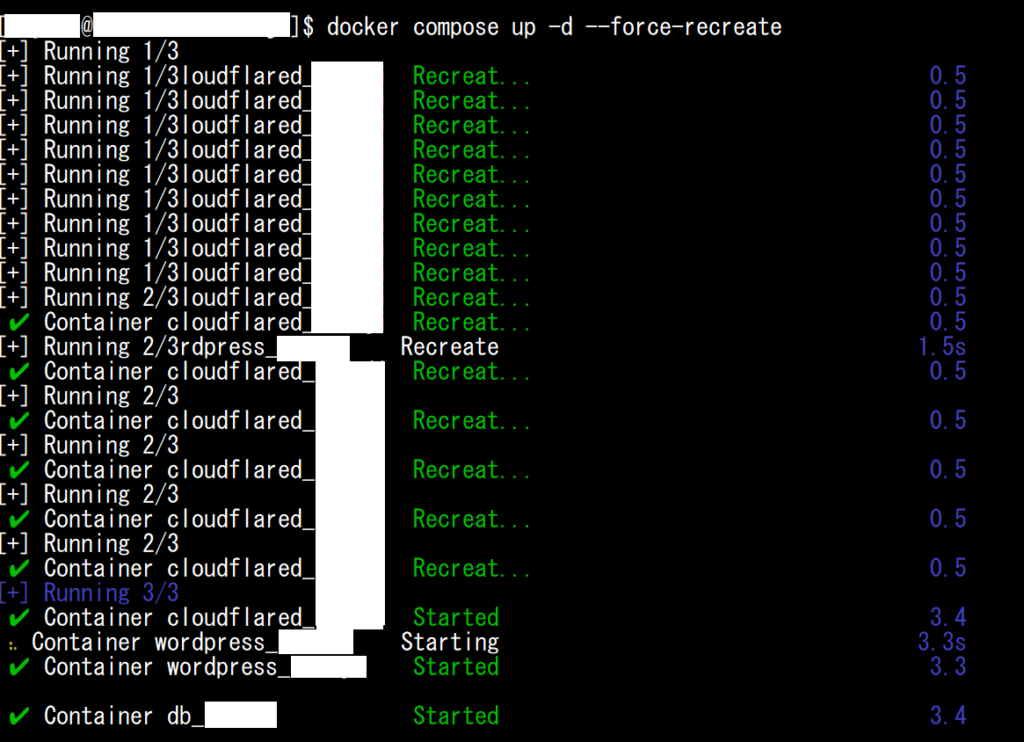 docker compose upすると、コンテナ構成が壊れる可能性があります。 必ずdocker psで現在動いているコンテナを確認してから作業してください。