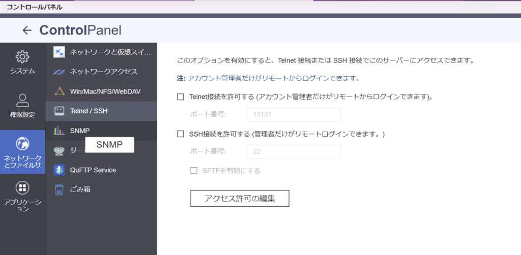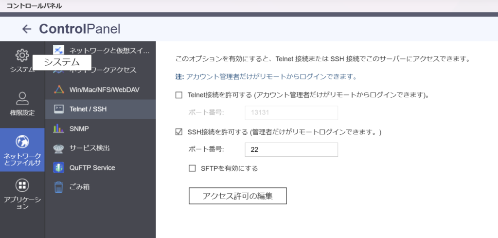 Step 1:QNAPのSSHを有効にする