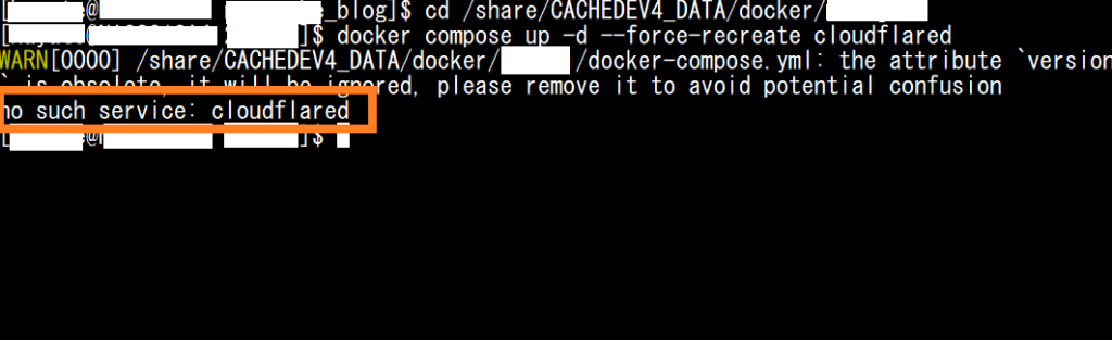 サービス名が異なる場合のトラブルシューティング no such service: cloudflaredというエラーが出た場合は、docker-compose.yml内のサービス名が異なります。以下のコマンドでサービス名を確認してください。