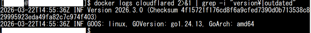 docker logs cloudflared 2>&1 | grep -i "version\|outdated"